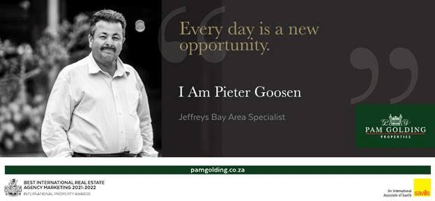 If you are looking to sell or buy a new home in the Jeffreys Bay and surrounding area feel free to get in touch with Pieter Goosen of Pam Golding. Kindly refer to the to the WhatsApp catalogue link for all the latest properties in Pieter`s portfolio : https://wa.me/c/27847455189